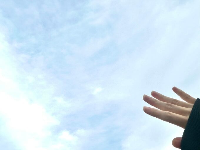 投稿された画像では、青空に手をかざす鈴木愛來さんの様子が見て取れます。