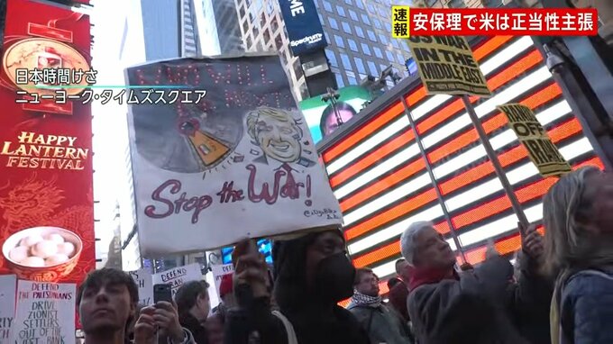 「NY中心部では大勢の人が集まって、イランへの攻撃をすぐに停止しろと声を上げています」