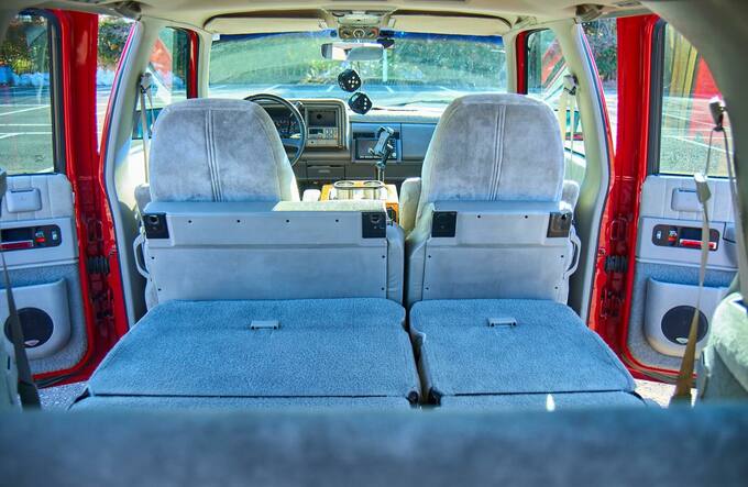 この車両の特徴として、1994年までのモデルに特有のシートアレンジ機能があります。後部座席を完全にフラットに倒すことができ、3メートルのロングボードも積載可能です。また、シートは簡単に取り外しができるため、キャンプなどのアウトドア用途にも適しているとしています。