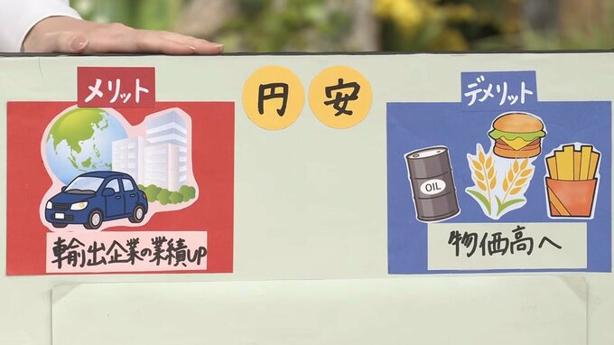 通貨安は輸出産業にとってメリットがある一方で、多くの資源を輸入に頼っている日本では、物価高に繋がります。