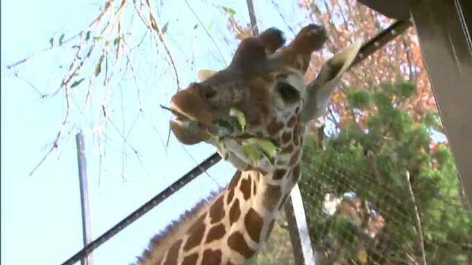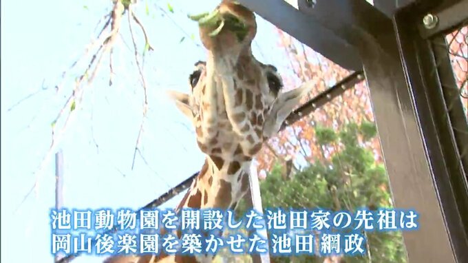 後楽園と池田動物園。池田家の長~いつながりが生んだ首の長~いSDGsの取り組みです。せん定した枝葉は約10日間かけてサンタロウに与えられるということです。