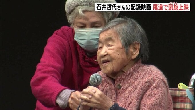 100歳を超えても一人暮らしを続ける女性の記録映画が1日、広島県尾道市で上映され、主人公の石井哲代さん(105)が、舞台上で挨拶しました。