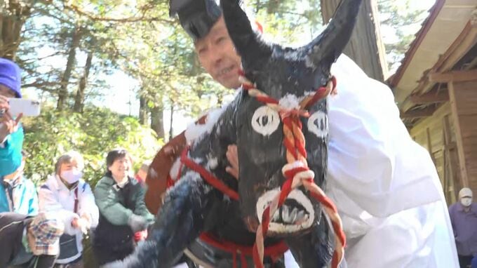少雨の影響で水不足となっている長野県筑北村で伝統の祭りが開かれ、水不足の解消と豊作を祈りました。筑北村の「お田植え祭り」は、県の無形民俗文化財に指定されている豊作を祈る神事で、墨で黒く塗った張り子の…