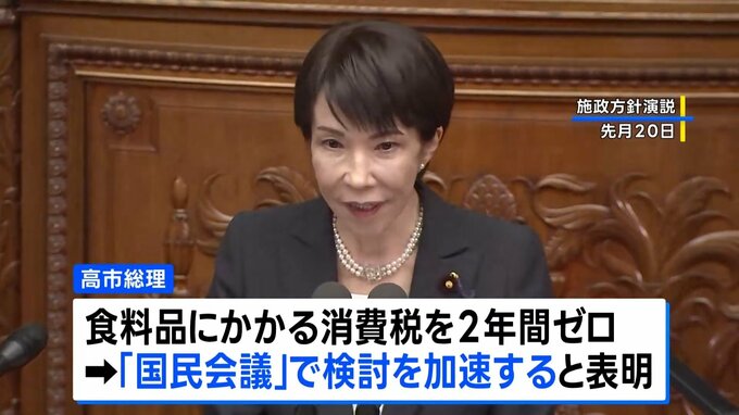 高市総理は施政方針演説で、食料品にかかる消費税を2年間に限りゼロにすることについて「国民会議」で検討することを表明しました。