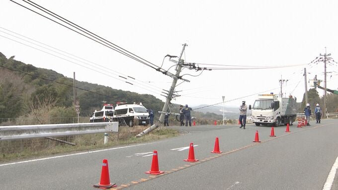 この事故によって電線が垂れ下がり危険なため、宗像市の「瀬戸交差点」から岡垣町の「芹田交差点」までのおよそ6キロが全面通行止めとなっています。
