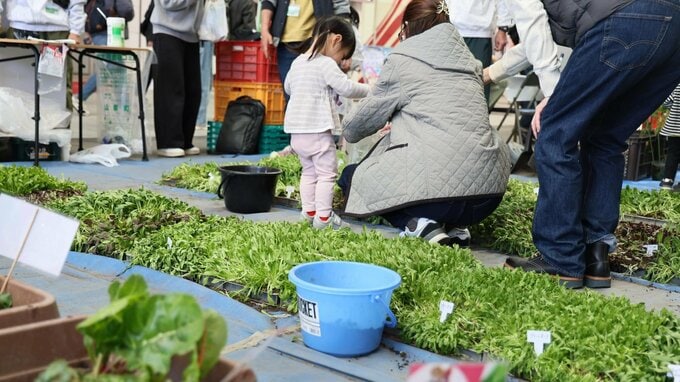 新市街の「ファーマーズマーケット」会場は、県産の新鮮な農林畜水産物が並び、野菜の直売には長い列ができたほか、農業体験ゾーンでは、親子連れなどが土に触れながら香りも楽しめる喜びを味わった。