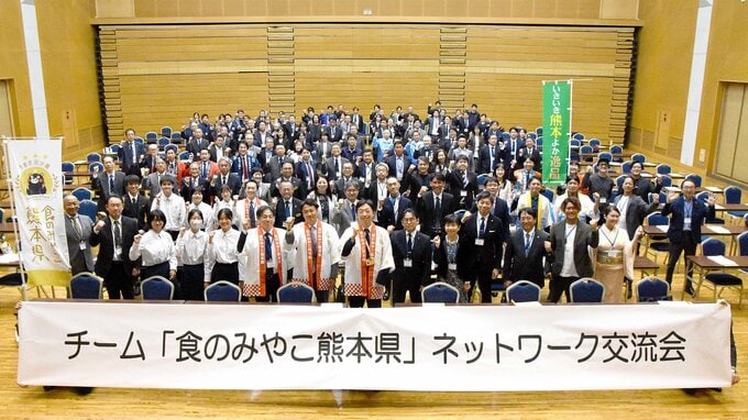 熊本の食の魅力の再認識、県内の食の関係団体間の情報共有などを目的とした「チーム食のみやこ熊本県ネットワーク交流会」には、生産、加工、流通、販売、観光など、食の関係機関から総勢100人以上が参加。組織の垣根を越え「共に何ができるか」を語り合うフィールドができた。
