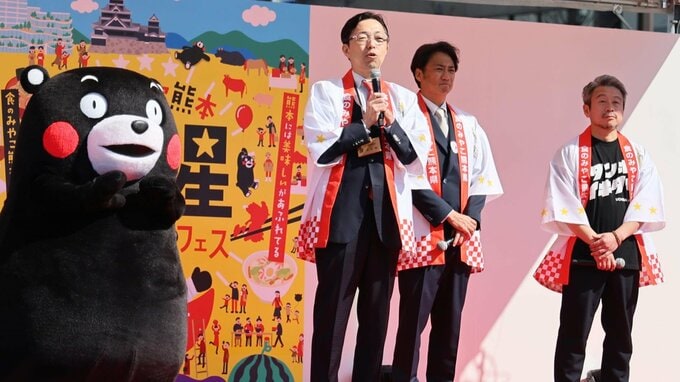 熊本市の花畑広場をメイン会場に、近くの新市街アーケードでも「ファーマーズマーケット」が開かれ、2日間で5万人以上が来場。会場では県産食材を使った料理や特産品が並び、多くの人で賑わった。