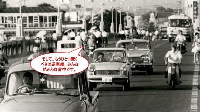 つまり、この時代、道路を自転車で逆走している人が1人もいないのです。すべての自転車が左側通行遵守。