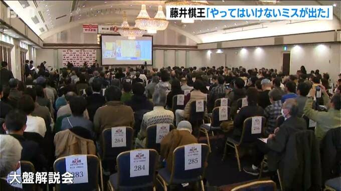 会場の別の部屋で行われた大盤解説会には、新潟県の内外から多くの将棋ファンが詰めかけ盤上を見守りました。