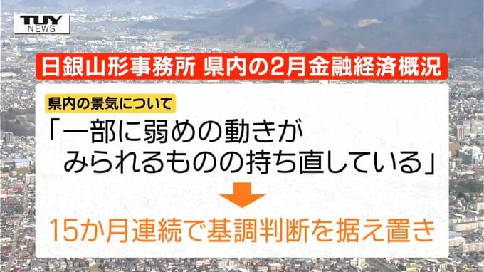 日本銀行山形事務所は県内の2月の金融経済概況について、基調判断を15か月連続で据え置きました。