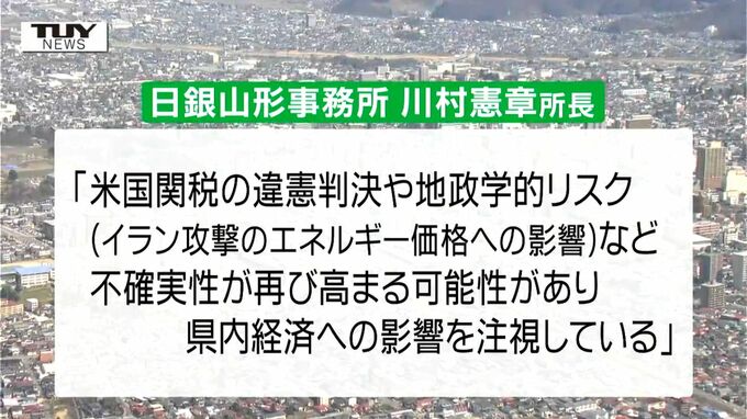 日銀山形事務所の川村憲章所長は、「米国関税の違憲判決や、イラン攻撃のエネルギー価格への影響などの地政学的リスクなど、不確実性が再び高まる可能性があり、県内経済への影響を注視している」とコメントしています。