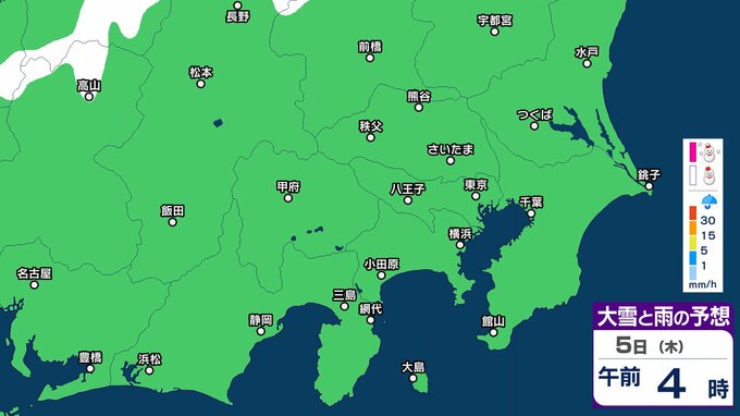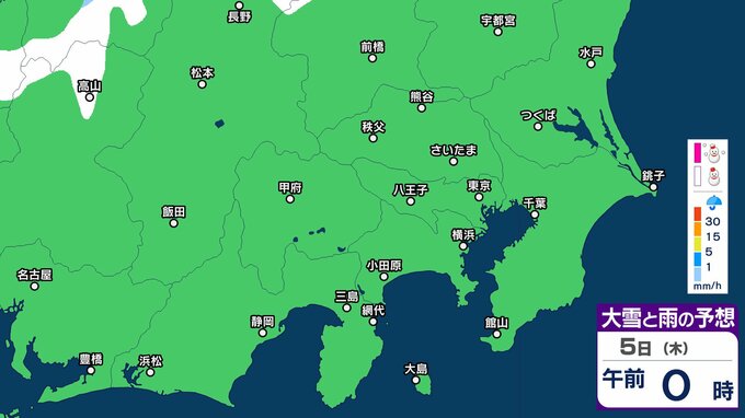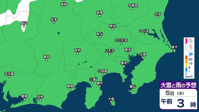 【東京23区でも積雪か】東京・神奈川・千葉・埼玉・茨城・栃木・群馬・山梨・長野 関東エリア 2日(月)~5日(木)1時間ごとの雪雨シミュレーション 東京・多摩地区は3日夕方から大雪のおそれ【気象庁/2日午後8時シミュレーション更新】 55分前