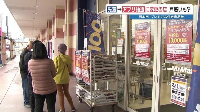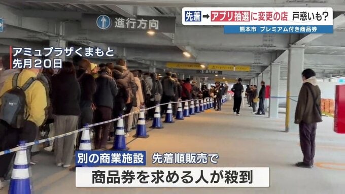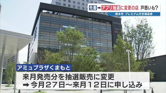 しかし、先に発売した市内の別の商業施設で商品券を求める人が殺到し、混乱が起きたことから、熊本市の要請を受け、急きょ携帯アプリを使った抽選販売に変更しました。