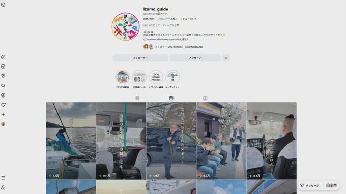 「『ローカルドライバープロジェクト』と言って、タクシードライバーになってもらえる人を増やすために、ドライバーさんの仕事内容とか、どういう活動を出雲でしているのかを紹介する取り組みを『出雲ガイド』というSNSを通してやってます」