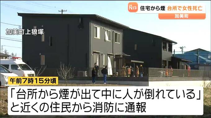 2日朝、宮城県加美町の住宅から煙が出ていると消防に通報があり、台所でこの家の女性1人が死亡しているのが見つかりました。2日午前7時15分頃、加美町上狼塚の住宅で「台所から煙が出て中に人が倒れている」と近く…