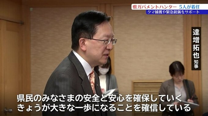 県庁では会計年度任用職員として採用されたガバメントハンター5人が達増知事と面会しました。