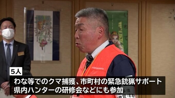 5人の任期は1年で、わななどでのクマの捕獲や市町村からの求めに応じた緊急銃猟のサポートのほか、県内ハンターの捕獲技術向上のための研修会にも参加するということです。