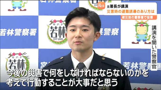 若林警察署で講演したのは気仙沼警察署の当時の署長、佐藤宏樹さん(64)です。佐藤さんは、15年前の震災で拳銃などの装備を守るため、署員9人を警察署内に残しました。警察署は津波で被災し、かろうじて全員が無事でしたが、講演では、この決断についていまも自問自答していると話しました。