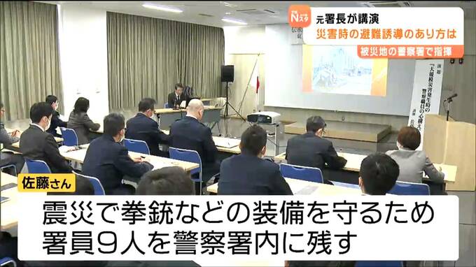 東日本大震災の発生からまもなく15年となるのを前に、被災地の警察署で指揮を執った元署長が講演し、災害時の避難誘導のあり方を現役の警察官に伝えました。