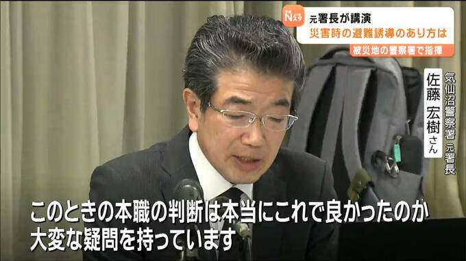 気仙沼警察署では、住民の避難誘導に最後まであたった警察官2人が殉職しました。部下2人を亡くした佐藤さんは、避難を呼びかける警察官も、危険が迫る前に避難するよう退避時刻の設定を徹底することを訴えました。