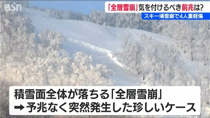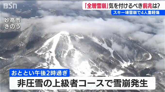 新潟県 妙高市と長野県 飯山市にまたがる斑尾高原スキー場で雪崩が発生し4人が重軽傷を負った事故。今回は、「予兆がなく突然発生した珍しい雪崩」という調査結果でしたが、この時期の雪崩への注意点を専門家に聞きました。