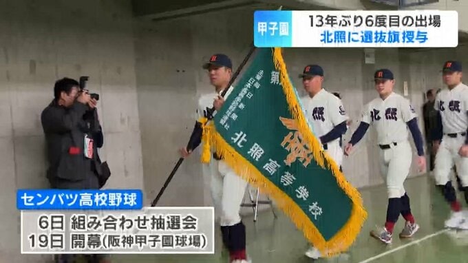 3月19日開幕のセンバツ高校野球に出場する北海道小樽市の北照高校に2日、選抜旗が授与されました。