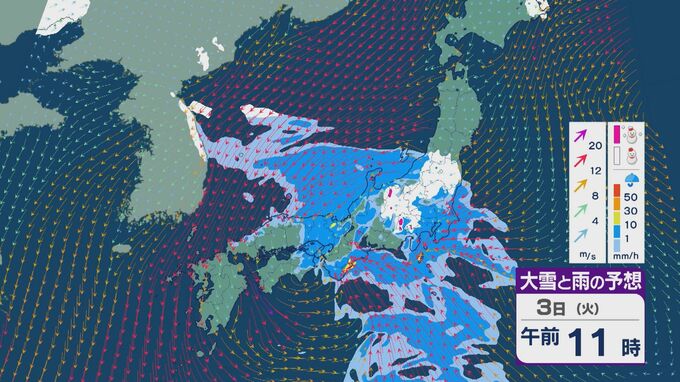 3日にかけての雨と風の予想ですが、午前中は中国・四国から関東にかけて雨や雪が降るでしょう。関東では、昼前から雪が降るところもありそうです。