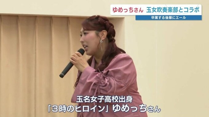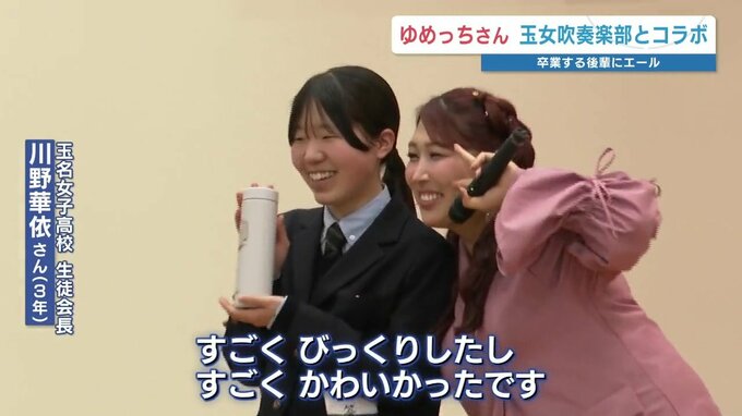 後輩たちに大歓声で迎えられたのは、玉名女子高校出身で、お笑いトリオ「3時のヒロイン」のメンバー「ゆめっち」さんです。