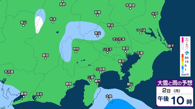 【東京23区でも積雪か】東京・神奈川・千葉・埼玉・茨城・栃木・群馬・山梨・長野 関東エリア 2日(月)~5日(木)1時間ごとの雪雨シミュレーション 東京・多摩地区は3日夕方から大雪のおそれ【気象庁/2日午後8時シミュレーション更新】 3時間前