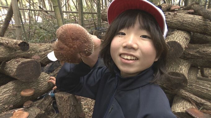 山口県阿武町の児童が2日、地元で栽培されている原木シイタケの駒打ちを体験しました。