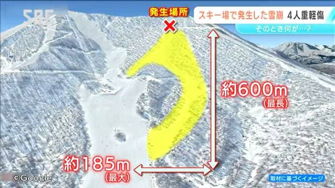 警察やスキー場によりますと、雪崩の規模は、最長で600メートルほど。