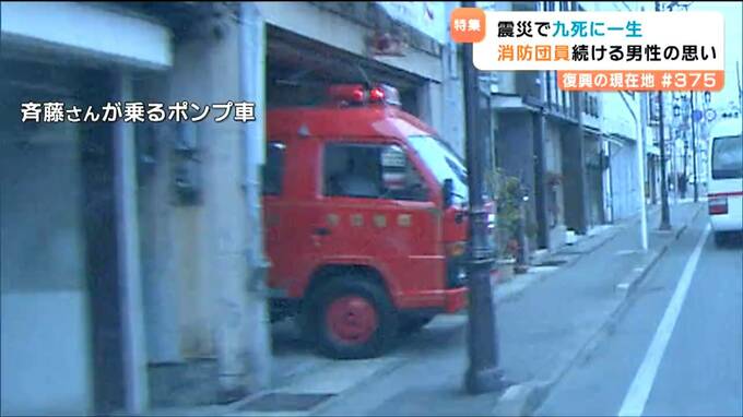 津波警報が出される中、斉藤さんの乗ったポンプ車が屯所から出ていくところをtbcのカメラが捉えていました。