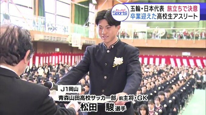 J1岡山にキーパーとして加入した松田駿 選手は、青森山田高校の卒業式に出席。最終学年では、キャプテンとしてチームを率いました。