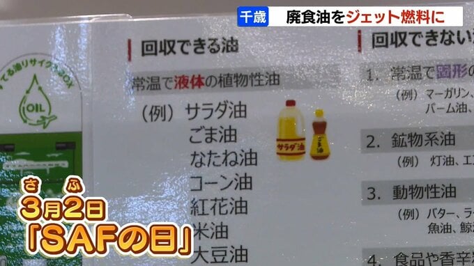 3月2日を語呂合わせで「サフの日」とし、千歳の商業施設で開いたイベントでは油を持ち込んだ利用者に32マイルがプレゼントされました。