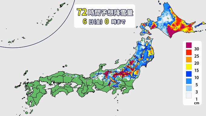 東北太平洋側では、平地でも大雪となる所がある見込みです。また、雪を伴った北よりの強い風が吹き、海上ではうねりを伴い、しけるでしょう。