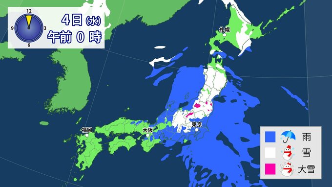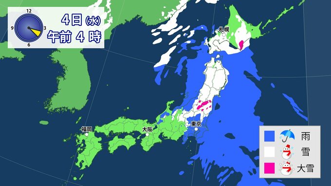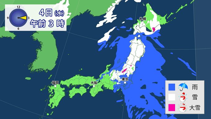 3. 【東京も雪?】南岸低気圧通過 関東甲信・東北など「警報級大雪」のおそれ 平地で積雪となる所も【気象庁・最新の雪と雨のシミュレーション】