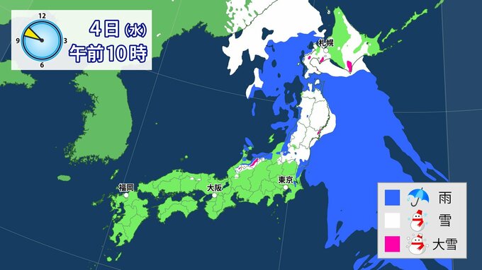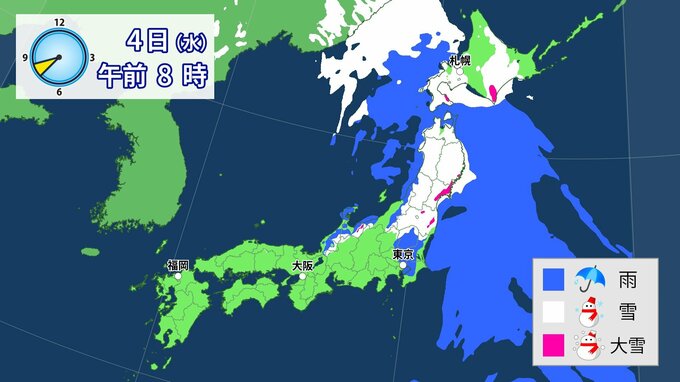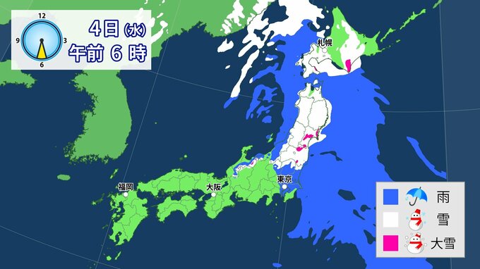 3. 【東京も雪?】南岸低気圧通過 関東甲信・東北など「警報級大雪」のおそれ 平地で積雪となる所も【気象庁・最新の雪と雨のシミュレーション】