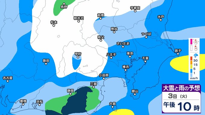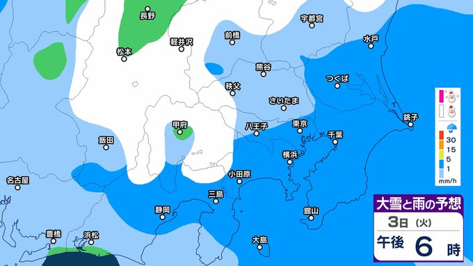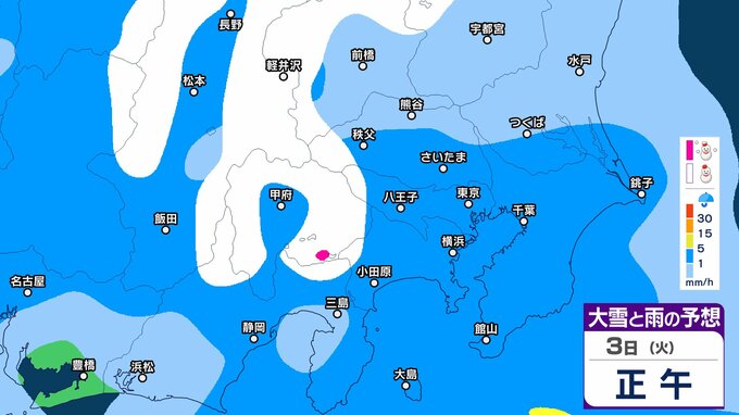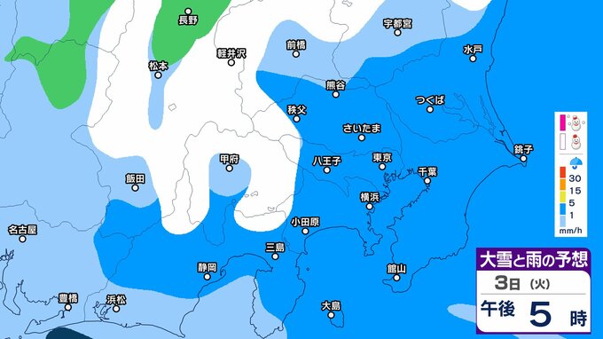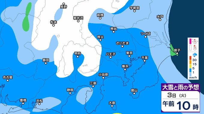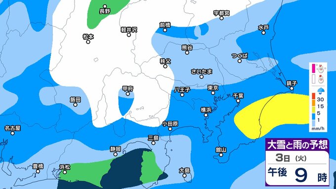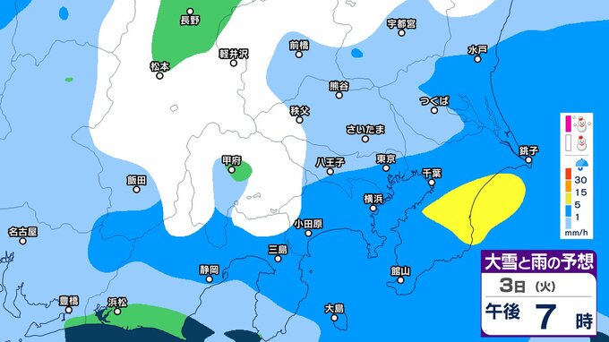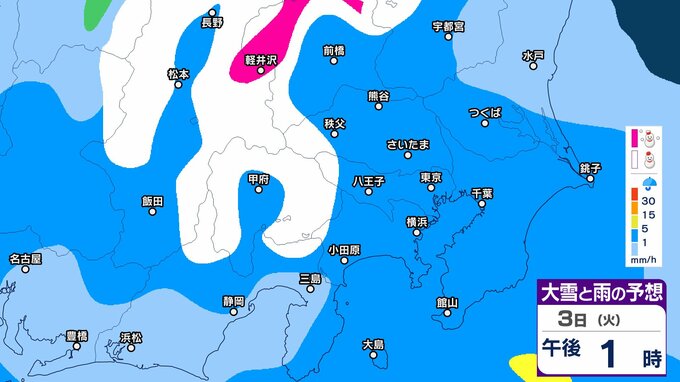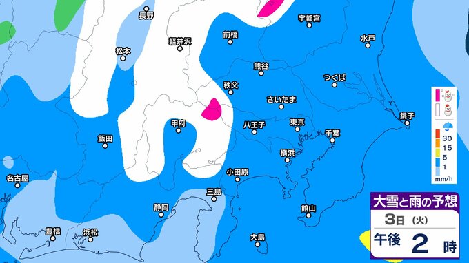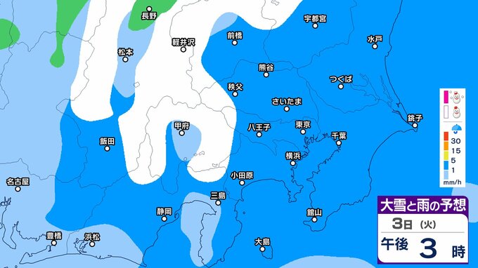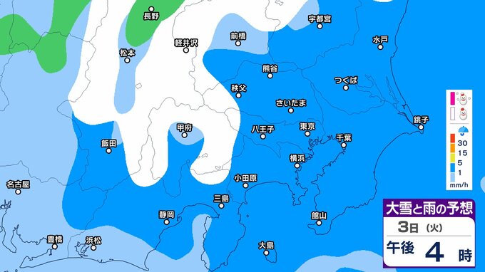 多摩西部では、予想より地上気温が低くなった場合には、警報級の大雪となる可能性があります。