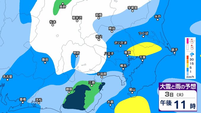 3日6時から4日6時までに予想される24時間降雪量は多い所で、