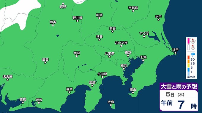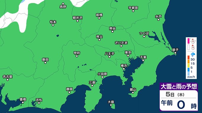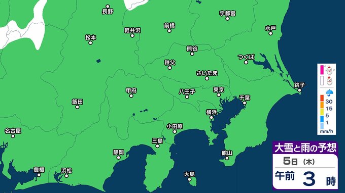 【関東首都圏でも積雪か】東京・神奈川・千葉・埼玉・茨城・栃木・群馬・山梨・長野 関東エリア 3日(火)~8日(日)3時間ごとの雪雨シミュレーション 関東地方南部の平地でも積雪のおそれ【気象庁/3日午前11時シミュレーション更新】 2時間前