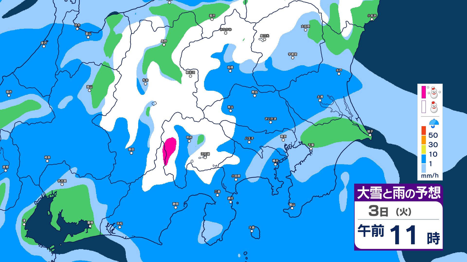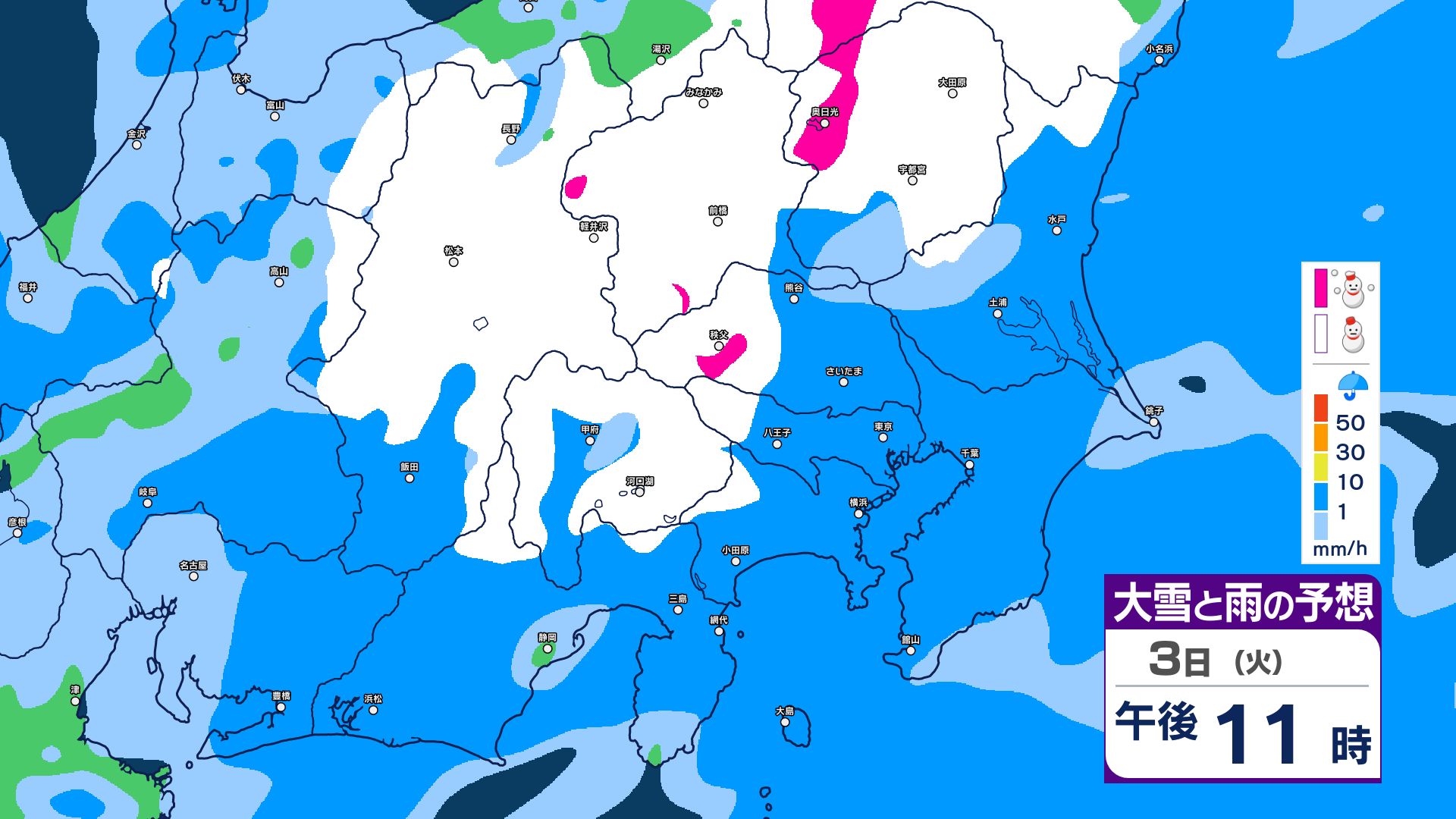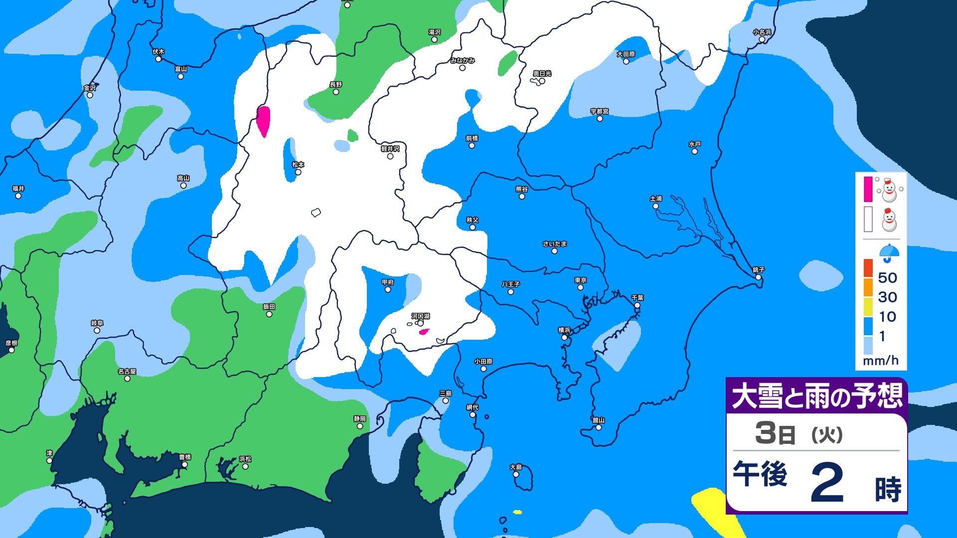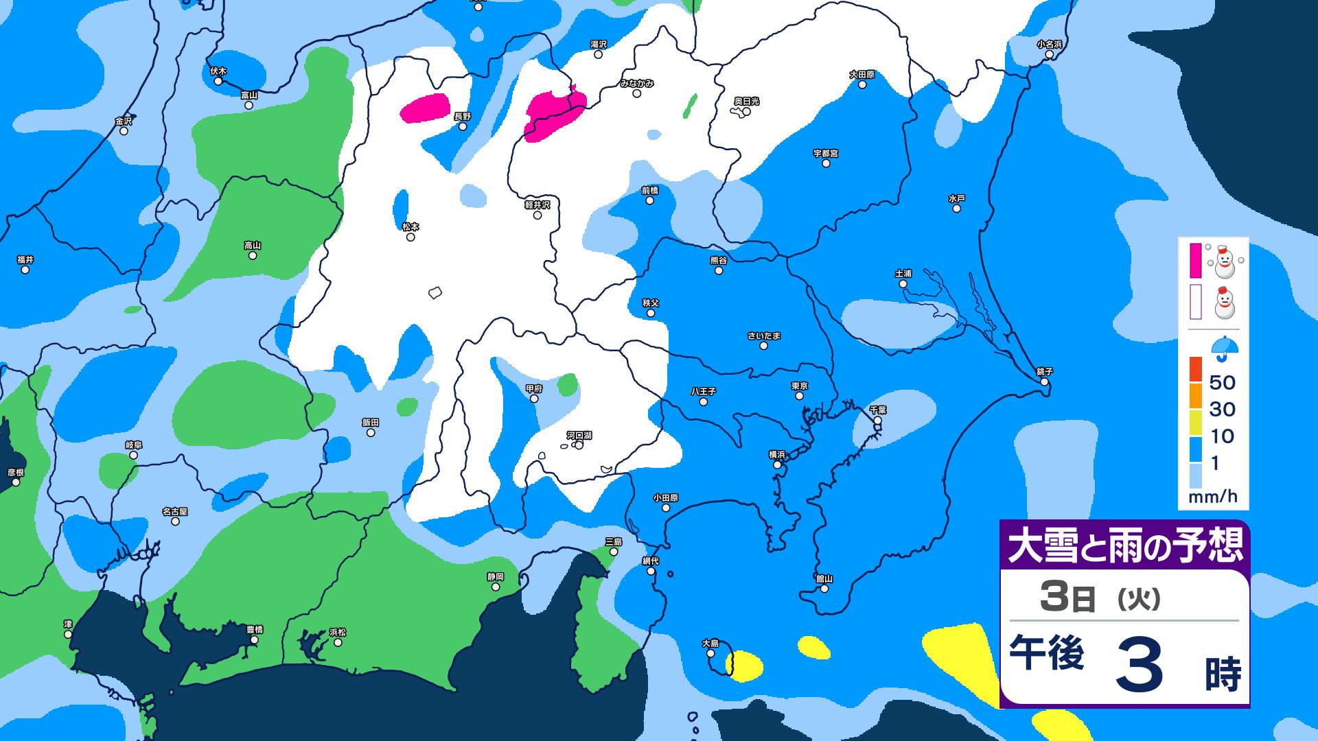【関東甲信・1時間ごとの雨と雪のシミュレーション】3日昼過ぎ~4日昼前 山沿い中心に大雪…関東地方南部の平地でも積雪か 東京・長野・群馬・茨城・栃木で警報級の大雪の可能性 信越放送 2026年3月3日(火) 09:59 国内 【雨と雪のシミュレーション掲載】