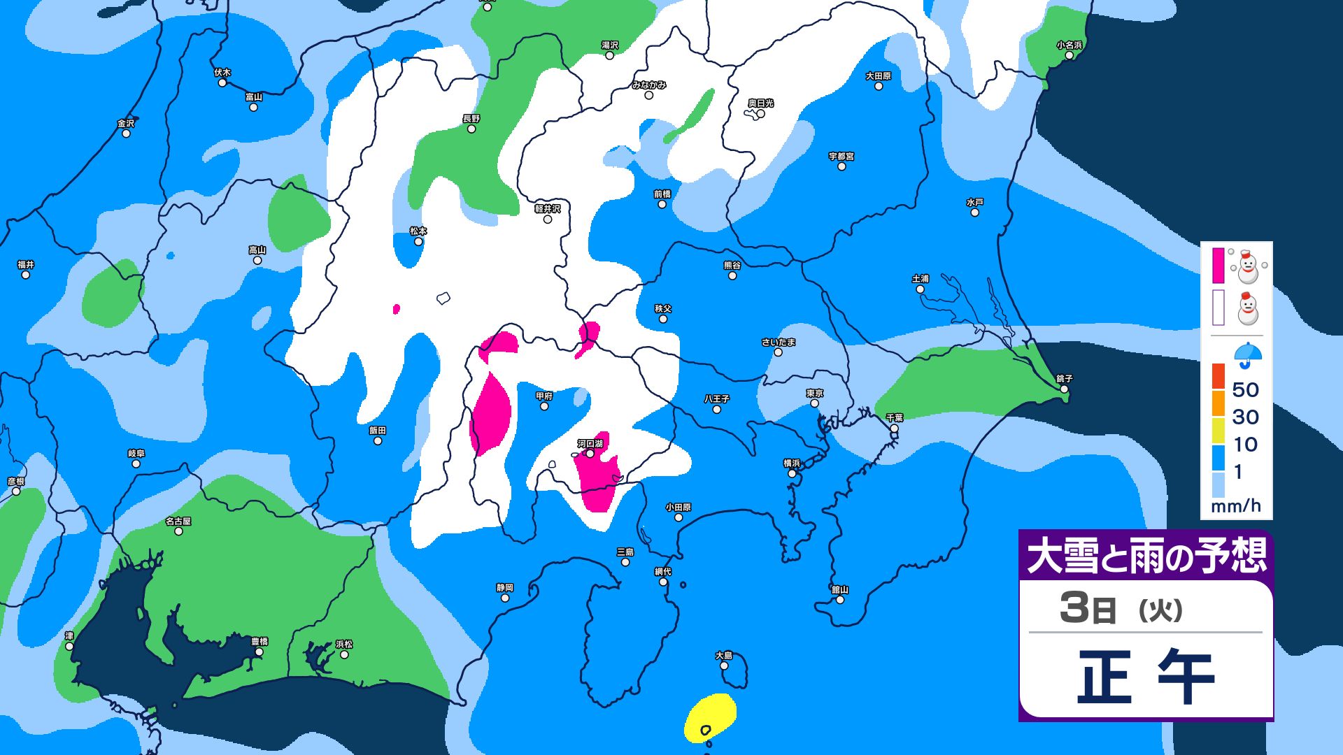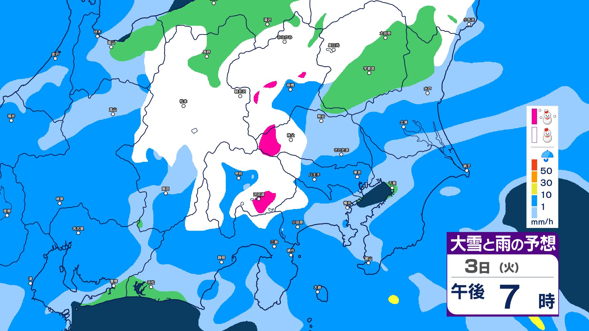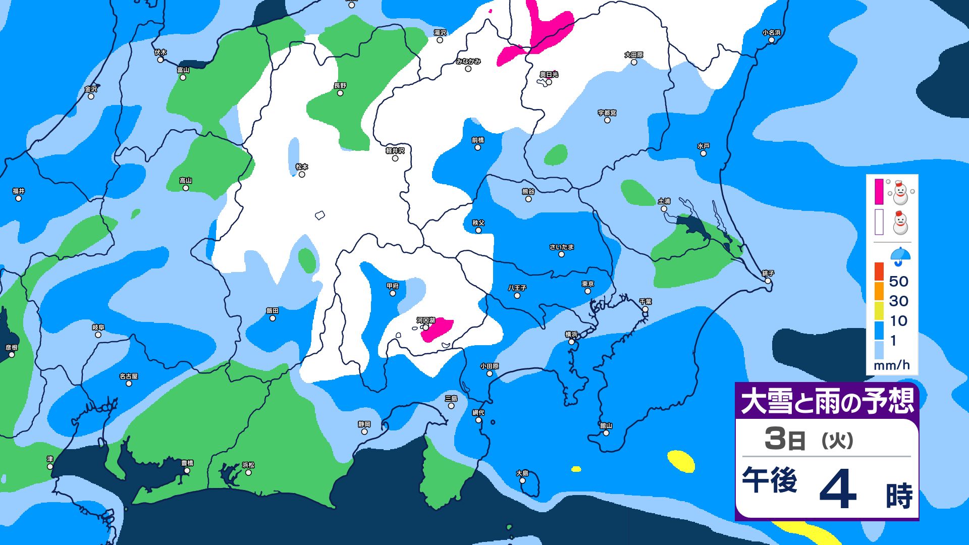 【関東甲信・1時間ごとの雨と雪のシミュレーション】3日昼過ぎ~4日昼前 山沿い中心に大雪…関東地方南部の平地でも積雪か 東京・長野・群馬・茨城・栃木で警報級の大雪の可能性 信越放送 2026年3月3日(火) 09:59 国内 【雨と雪のシミュレーション掲載】