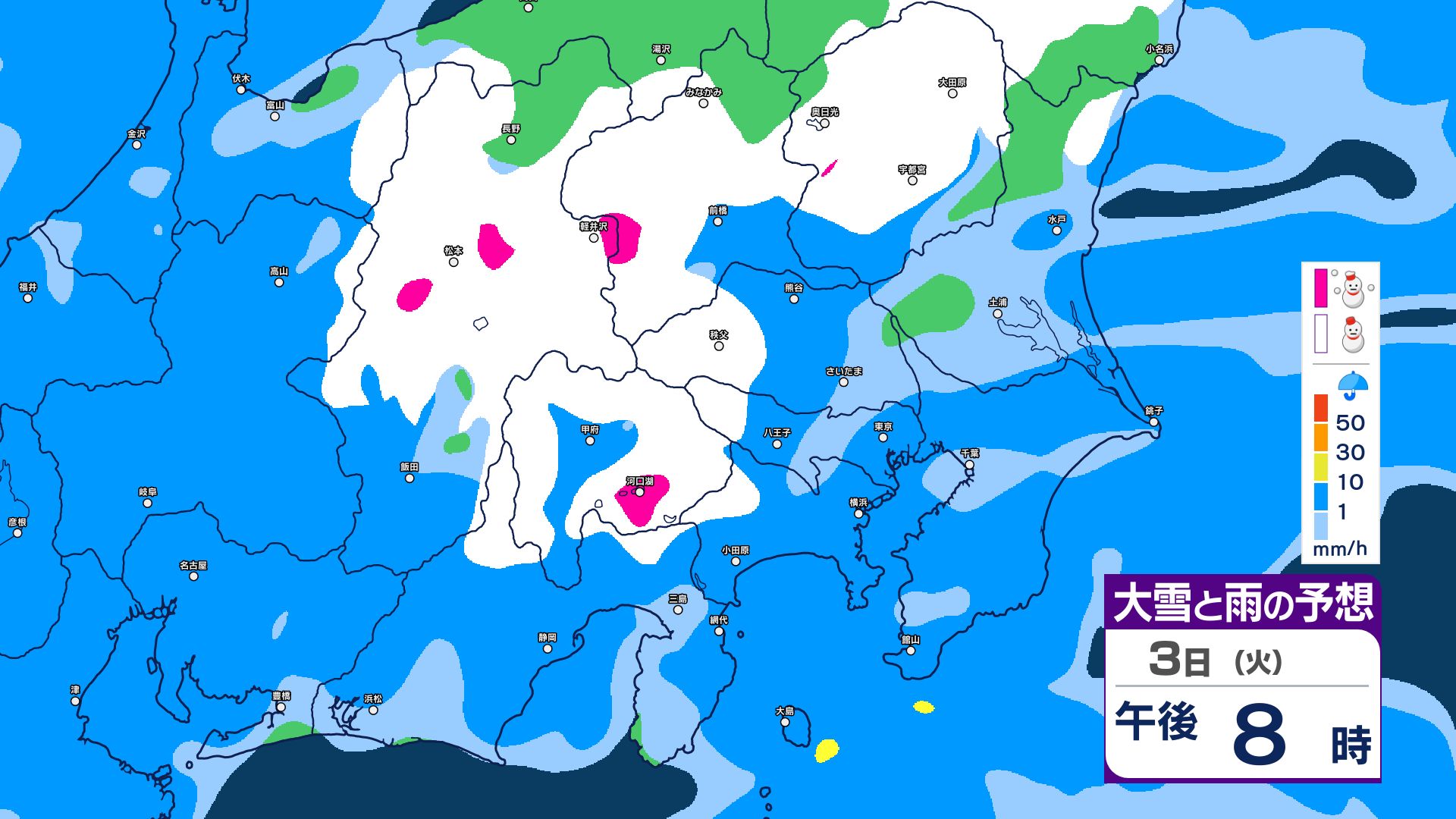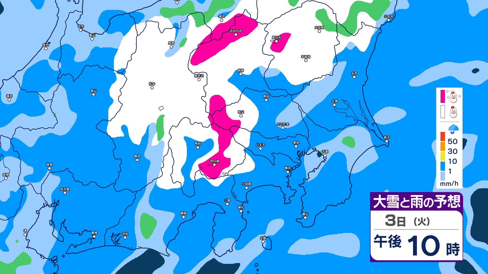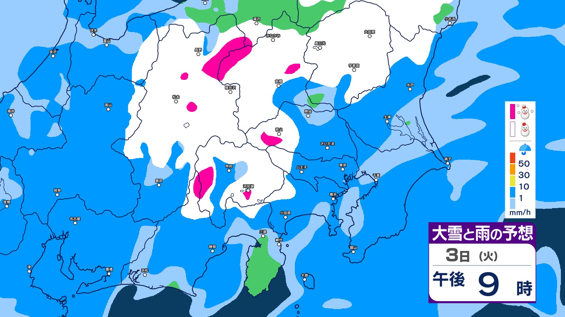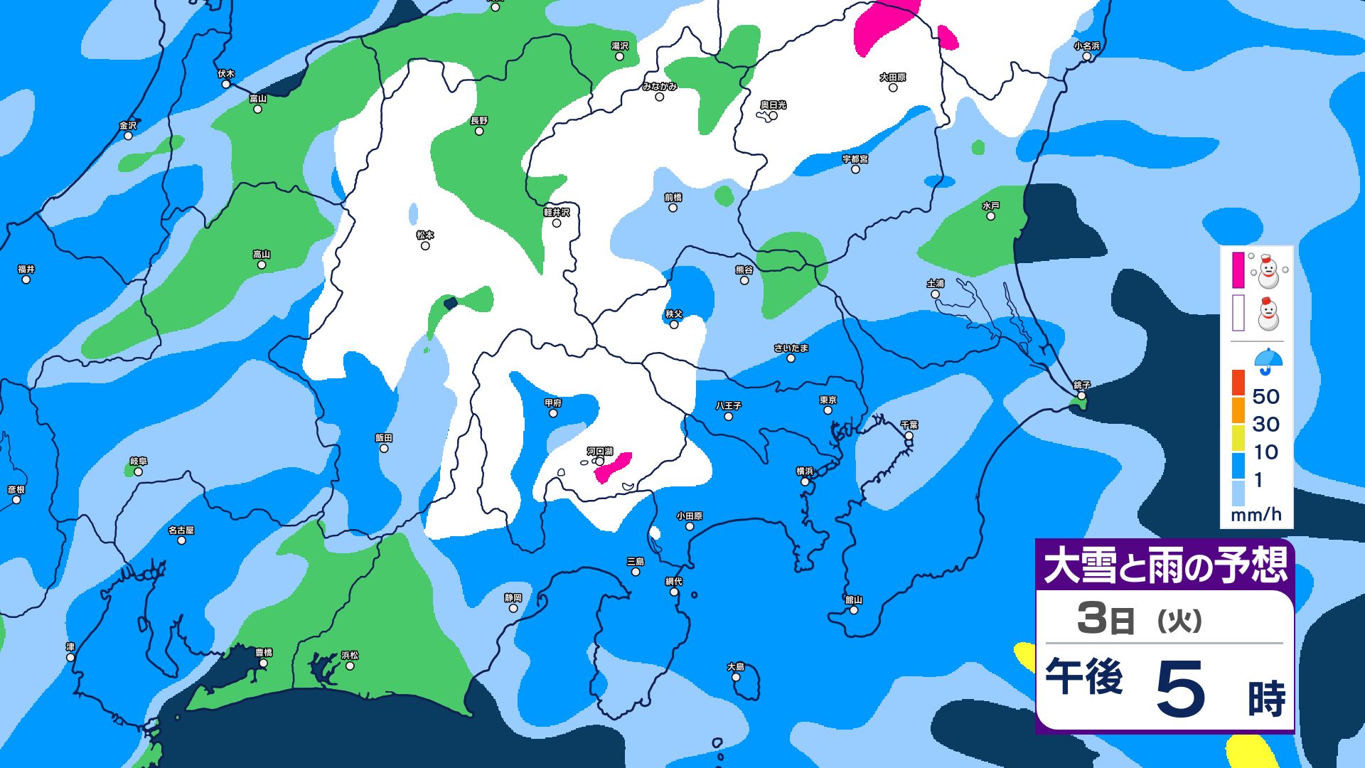 【関東甲信・1時間ごとの雨と雪のシミュレーション】3日昼過ぎ~4日昼前 山沿い中心に大雪…関東地方南部の平地でも積雪か 東京・長野・群馬・茨城・栃木で警報級の大雪の可能性 信越放送 2026年3月3日(火) 09:59 国内 【雨と雪のシミュレーション掲載】