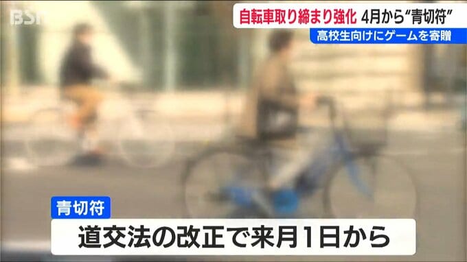 自転車利用者への『青切符』が導入されるのを機に高校生の交通安全意識を高めてもらうのが目的で、グループディスカッション用のワークシートや、保護者向けの資料も贈られました。