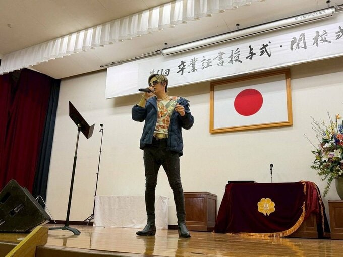 この3月で閉校する、福岡県久留米市の三井中央高校での卒業式に、自身がサプライズ登場した記事を添付し、改めて若者たちへメッセージを綴りました。