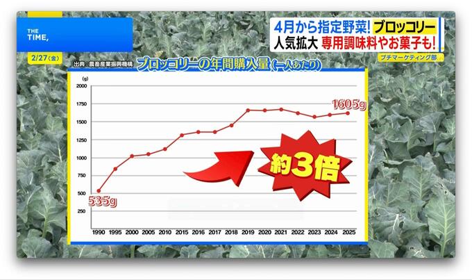 ここ30年で購入数が約3倍に増加しているブロッコリーは、4月から「指定野菜」の仲間入りをします。