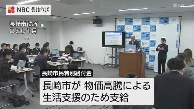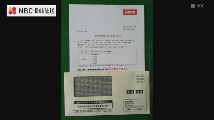 特別給付金は、長崎市が、物価高騰による生活支援のため支給するもので、ことし1月1日時点で長崎市に住民登録がある人1人あたり5千円、さらに住民税非課税世帯には1世帯あたり5千円を加算し、今月17日以降、順次振り込みます。