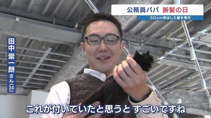 田中さんの妻 紗慧さん(32)「娘は人見知りが激しいので、夫が髪を切って相当短くなると…わかるかな?」