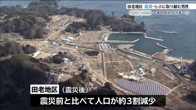 震災後、田老地区の人口は減少し、震災前と比べるとおよそ3割少なくなりました。